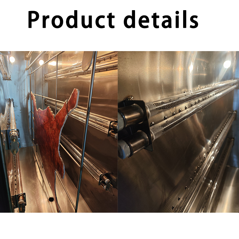Product details 1. It mainly consists of furnace body, heating system, temperature control system and transmission system. 2. The furnace temperature can be controlled automatically by the temperature control system according to the requirements. 3. The bottom of the furnace is provided with an oil discharge hole, which can recover the accumulated oil produced in the baking process to an oil receiving pan. Four. When the door is opened, the furnace is composed of inner and outer boxes, and the inner and outer boxes are filled with insulating materials for heat insulation. In order to improve the far infrared reflectivity and thus improve the thermal efficiency of the furnace. 5. The front and back of the oven door are made of large-area special high-temperature-resistant glass, which can bear 300 ° C without breaking, and the inner chamber is equipped with two sets of iodine-tungsten lamps, which can be used as auxiliary heating during the baking process, and also can watch the quality of the baked products at any time. 6. Special high-temperature resistant glass is used in front of the furnace door, which can withstand 300 ° C without breaking, and double-group iodine tungsten lamp is installed in the inner chamber. Seven. This machine is equipped with three gears and manual switch knob. Normal production use, can be temporarily converted to group control to ensure product quality can be on time electrical appliances used by professional electrical technicians to check.